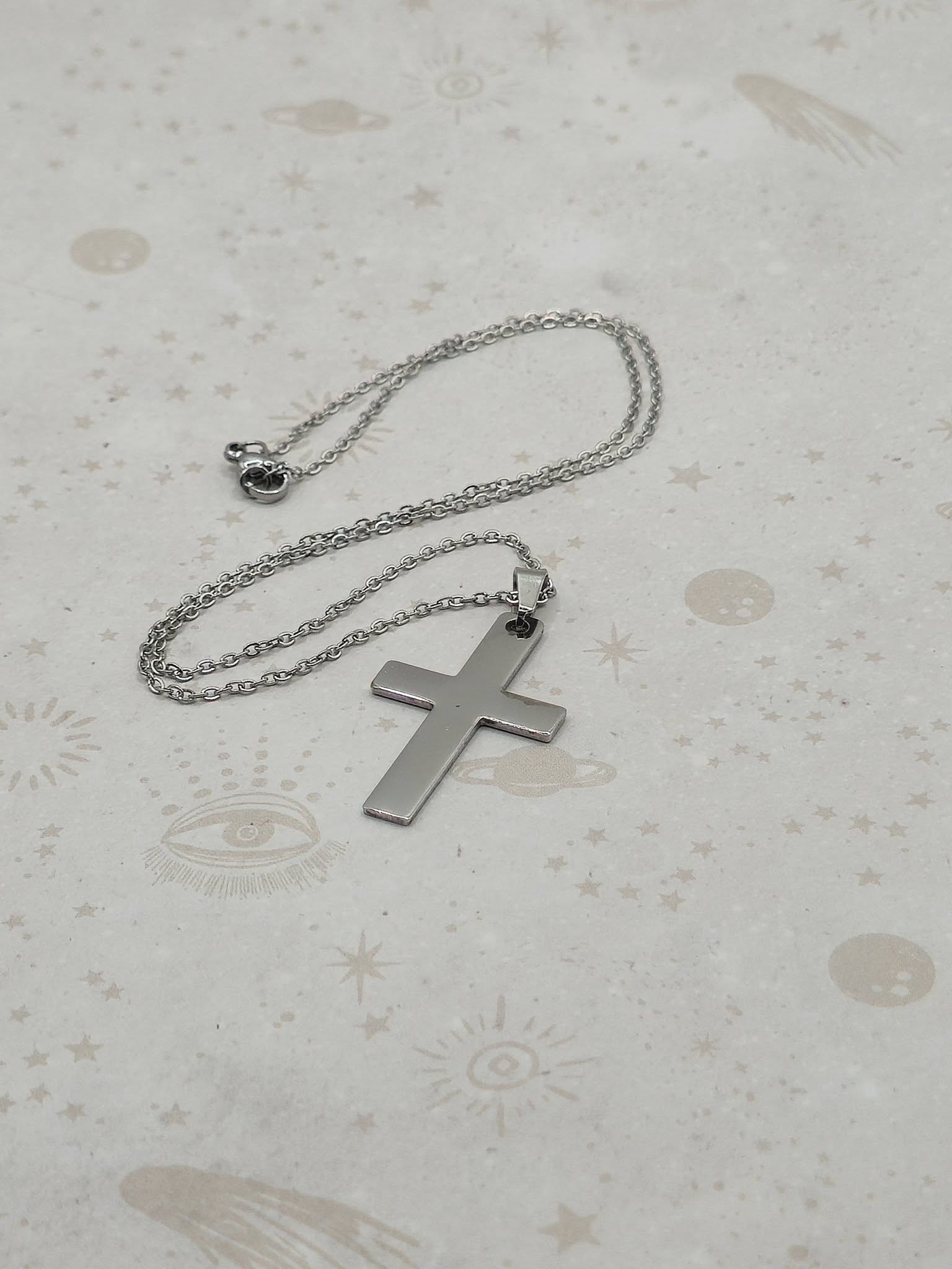 Expertly crafted from high-quality 304 stainless steel, these pendants feature a classic Latin cross design with a sleek stainless steel colour. Measuring 22mm wide, 36.5mm long, and 1mm thick, Comes with a handcrafted stainless steel necklace.