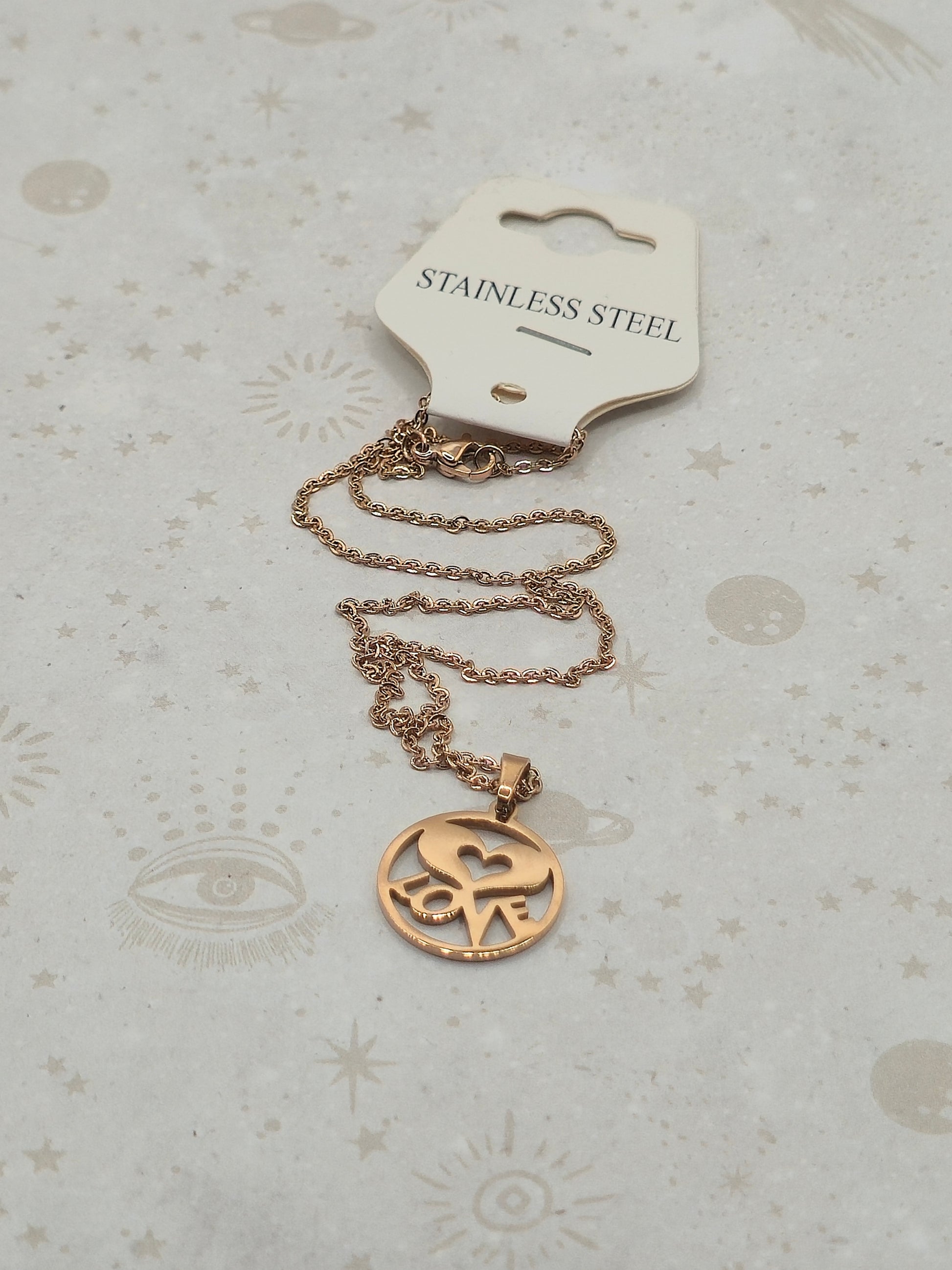 Expertly crafted with durable 304 stainless steel, these rose gold necklaces add a touch of elegance to any outfit. The flat round pendants feature a heart and the word "Love" to express your affection on Valentine's Day. With a cable chain and measuring 17.71 inches (45cm) long, 1.5mm wide, pendant: 20x17.5x1.5mm., they make a perfect gift for your special someone.