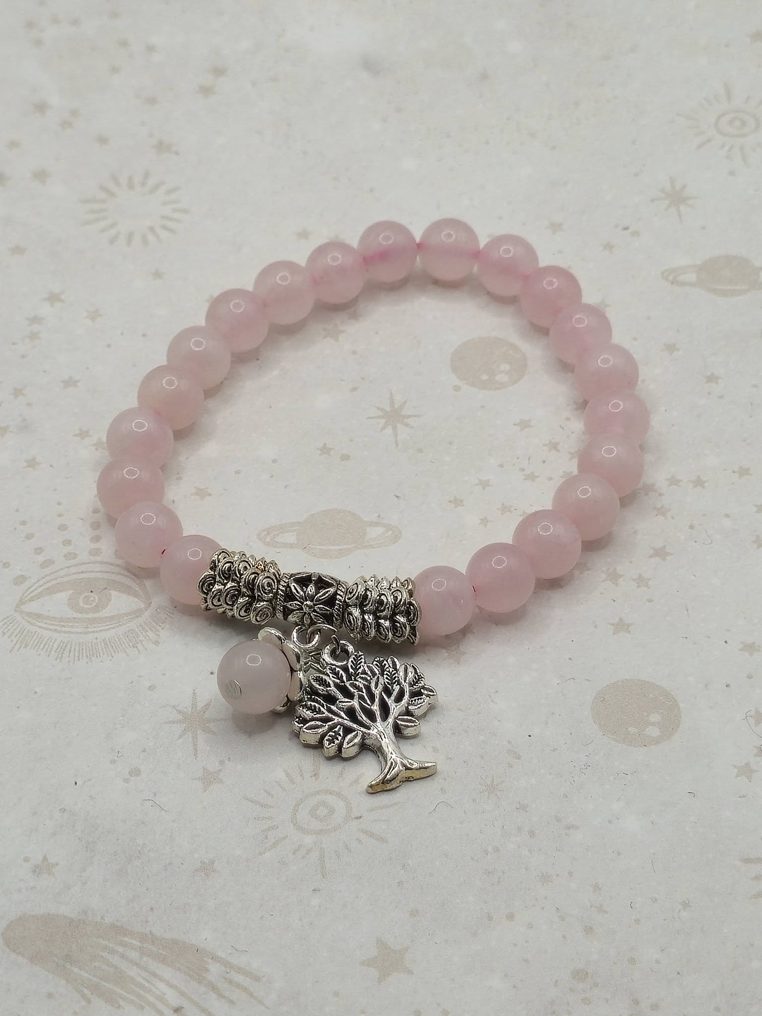 This natural rose quartz stretch bracelet features a Tibetan Style Tree of Life pendant for a touch of elegance and style. With an inner diameter of about 2 inches and beads measuring 8.5~9mm, these bracelets are the perfect addition to any jewellery collection. The pendants measure 22x17x2.5mm and 18x9mm, adding a unique flair to the bracelet. Enjoy the benefits of rose quartz while looking stylish with this stretch bracelet.