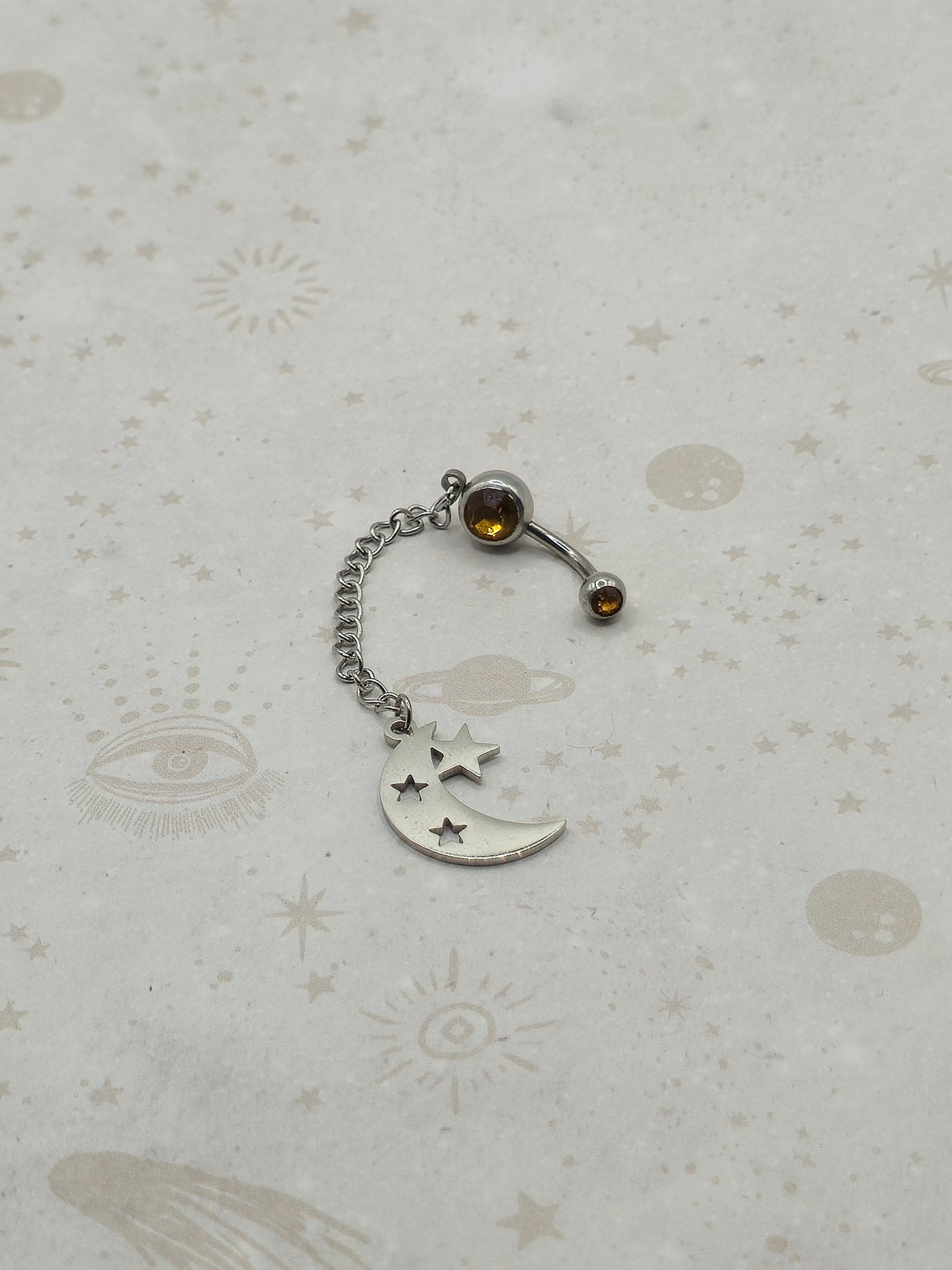 304 Stainless Steel Body Jewellery, Belly Rings, with Topaz coloured Rhinestone, 24mm, Pin: 1.5mm, Hole: 1.5mm -Moon